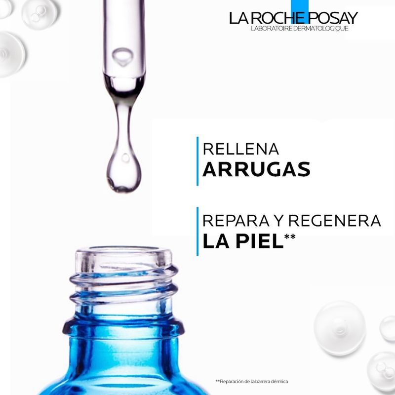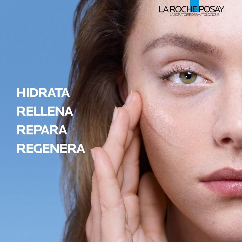 Ácido hialurónico de doble peso molecular: hidrata en profundidad, rellena las arrugas y mejora la elasticidad de la piel Vitamina B5 (pantenol): calma, repara y fortalece la barrera cutánea Madecassoside: derivado de la centella asiática que estimula la regeneración celular y ayuda a reparar la piel Agua termal de La Roche-Posay: con propiedades calmantes y antioxidantes que reducen la irritación y protegen la piel sensible