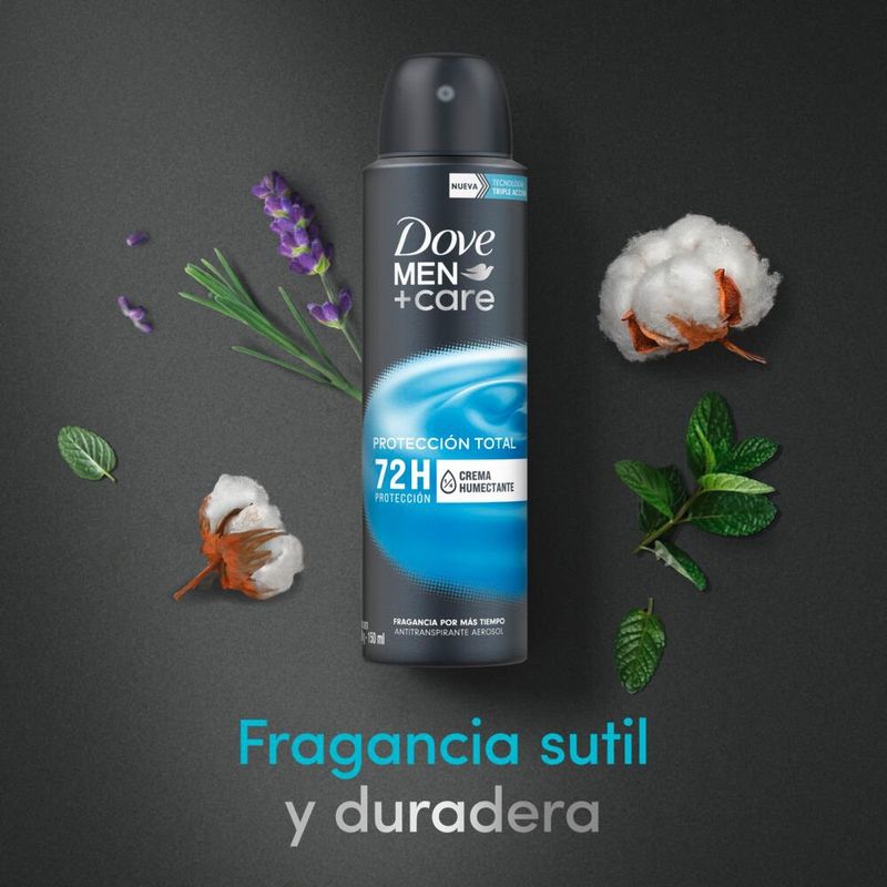 Te otorgan 48 horas de protección contra la transpiración. El desodorante en aerosol Dove Men+Care contiene ¼ de tecnología humectante que protege tu piel contra la irritación. Este antitranspirante masculino, contiene una fórmula 100 % libre de alcohol. Dermatológicamente probado y te otorga un aroma refrescante.