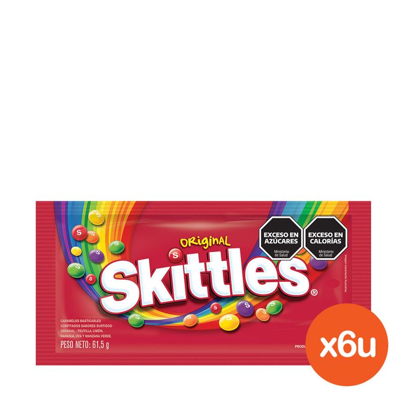 Hogar y AlimentosAlimentación SaludableGolosinas SaludablesCombo Caramelos Skittles Original x 61 g x 6 un