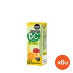 BC es la marca pionera en desarrollar productos de bajas calorías. Alimento líquido deitético con 50% de jugo de naranja, jugo de manzana, pulpa de durazno y jugo de banana con vitamina c libre de gluten.