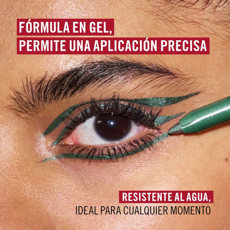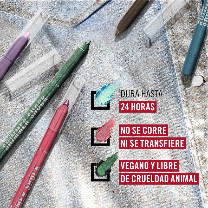 Brillo que cambia de color para delinear y brillar. El nuevo delineador en gel multicromático Thrill Seeker Shimmer Shock viene en 5 tonos deslumbrantes con un pigmento multicromático intenso y un brillo que te dejará sin aliento, para un acabado que refleja la luz. Líneas ultrasuaves en cada pasada con una punta afilable y fácil de deslizar para un deslizamiento sin esfuerzo. Totalmente resistente al agua para tus momentos más atrevidos, cambia de color según el ángulo de la luz, creando un efecto prismático deslumbrante. ¡Disfruta de la gama de colores en constante cambio con cada parpadeo hasta por 24 horas, sin manchas!