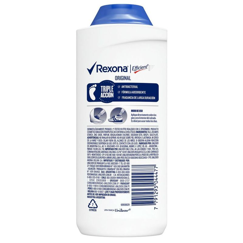 • Para mantener tus pies frescos y secos. • La protección de Rexona, también para tus pies. • En formato Aerosol y Talco. Modo de uso: