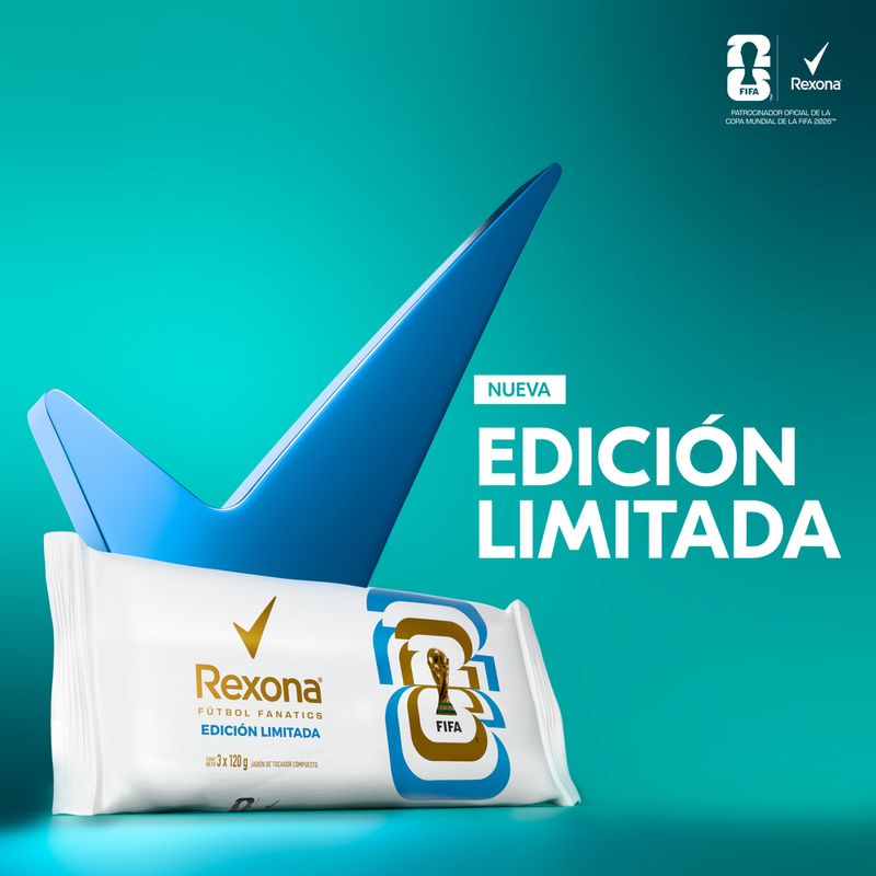 El Jabón en Barra Rexona Copa del Mundo de la FIFA 2026™ Multipack (3 unidades x 120 g) está diseñado para los fanáticos del fútbol que buscan una experiencia revitalizante en la ducha.