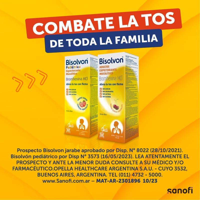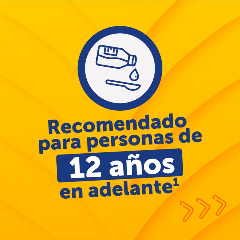 Dosificación. Los adultos y los niños mayores de 12 años (más de 30-35 kilogramos de peso) pueden tomar 5 mililitros (una cucharadita de té) tres veces por día, o sea cada 8 horas. Para niños entre 6 y 12 años (hasta 30-35 kilogramos de peso) la dosis es de 2,5 mililitros (1 cucharadita de café) tres veces por día, o sea cada 8 horas. El jarabe no contiene azúcar, por lo que puede ser tomado por personas diabéticas.