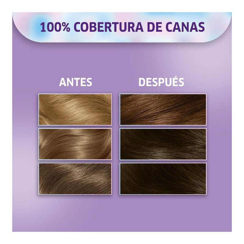 Color intenso que se queda en tu cabello, y no en el agua (Intensidad de color medible hasta por seis semanas, resultados obtenidos en pruebas técnicas). Coloración permanente en crema para el cabello. Color intenso y duradero. Perfecta cobertura de canas.