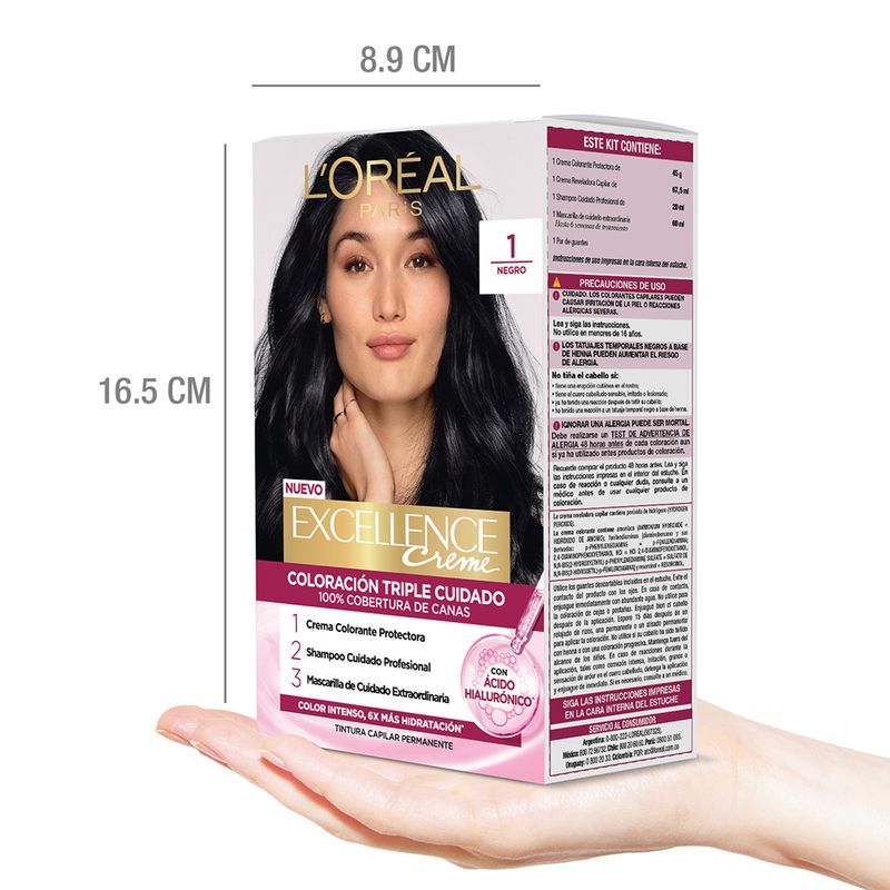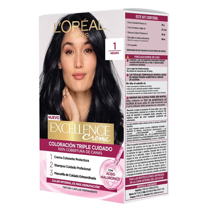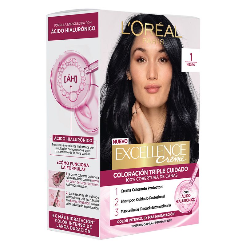 Excellence Creme Coloración Triple Cuidado Enriquecida con Pro-Keratina, protege tu pelo antes, durante y después de la coloración. Cobertura de 100% de canas, para un color perfecto, radiente y duradero.