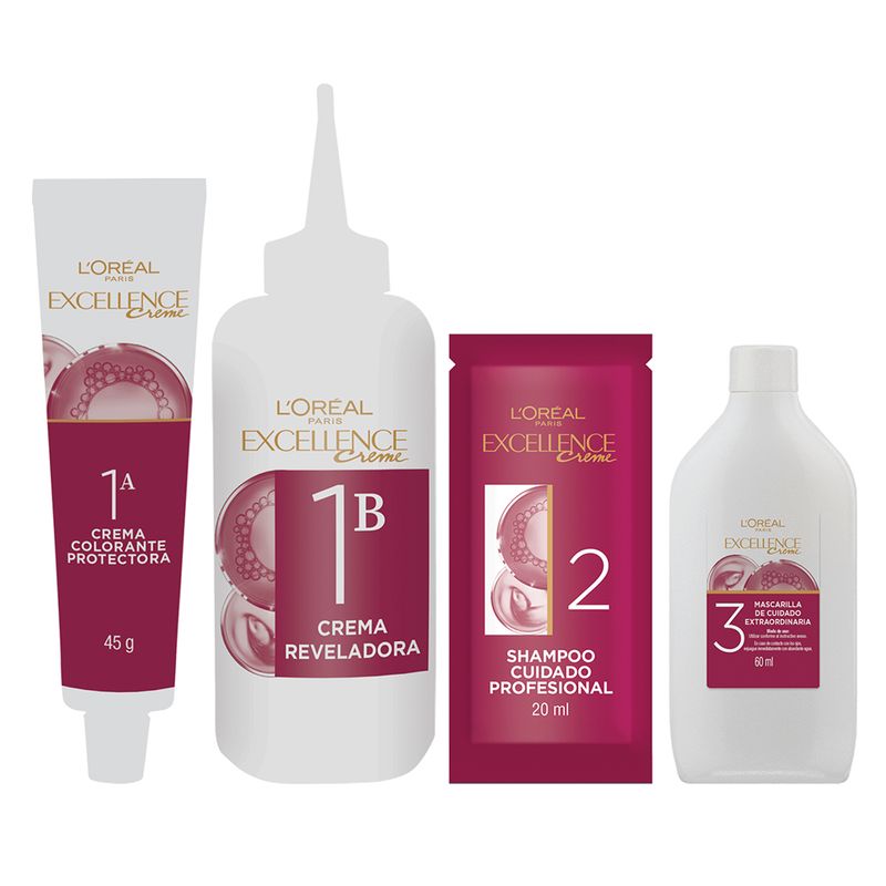 Si buscas una coloracion permanente, con 100% cobertura de canas y una rutina que cuide tu pelo, ¡Excellence es para vos! Excellence Creme Coloración Triple Cuidado enriquecida con Pro-Keratina, protege tu pelo antes, durante y después de la coloración. Cobertura de 100% de canas, para un color perfecto, radiente y duradero.
