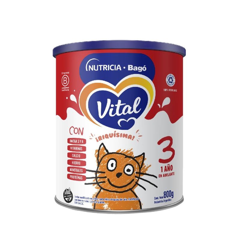 Leche en polvo Vital Nutri Plus 3 después de la primera infancia cuidado integral con Vitamina F, C y Hierro x 800 gr