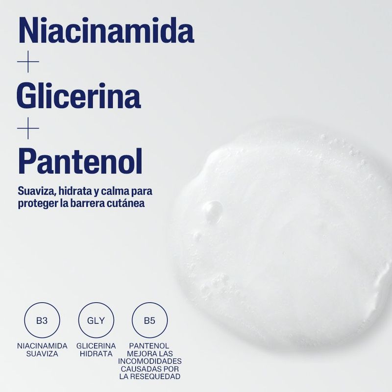 Diseñado con una mezcla respaldada por la ciencia de niacinamida (vitamina B3 esencial), pantenol (provitamina B5) y glicerina hidratante para ayudar a mejorar la resiliencia de la piel.