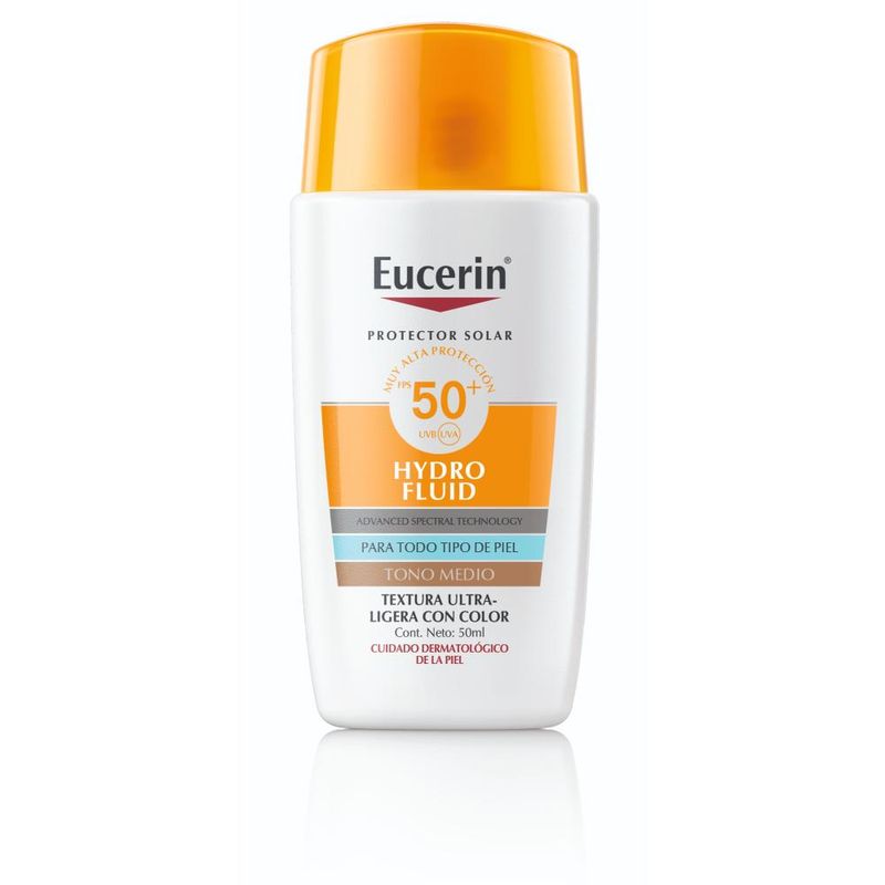 El Protector solar facial Eucerin Hydro Fluid Tono Medio previene el envejecimiento prematuro de la piel al bloquear el estrés oxidativo causado por la luz azul, lo que lo hace ideal para quienes están frecuentemente expuestos a pantallas .Nuestra fórmula con FPS 50+ ofrece una defensa eficaz, reduciendo el riesgo de daño solar. Proporciona hidratación inmediata y mantiene una sensación de frescura en la piel durante todo el día. Los pigmentos de color ayudan a lograr un tono de piel uniforme y homogéneo, brindando una alta cobertura que se adapta perfectamente a tu tono natural. Su composición suave está libre de irritantes comunes en los protectores solares, convirtiéndola en una opción ideal para quienes necesitan una solución hipoalergénica. Desarrollado en colaboración con make-up artists. Apto para todo tipo de pieles, incluidas las pieles sensibles.