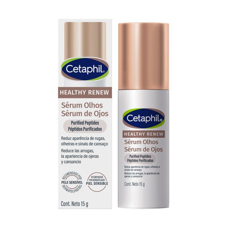 El Sérum Antiedad Contorno de Ojos Cetaphil Healthy Renew ha sido desarrollado especialmente para la delicada piel alrededor de los ojos. Su fórmula avanzada con Péptidos Purificados, Vitamina B3, Pro-Vitamina B5 y extractos botanicos combate los signos de fatiga, reduciendo la apariencia de ojeras, líneas finas y arrugas, al mismo tiempo que aporta luminosidad, firmeza y un tono más uniforme.