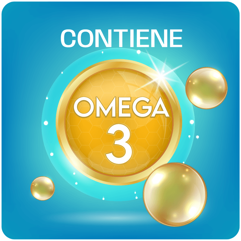 Aceite de pescado, Aceite de Soja, Ácido Ascórbico, Fumarato Ferroso, Acetato de DL-alfa tocoferol, Sulfato de Zinc, Clorhidrato de Piridoxina, Riboflavina, Selenito de Sodio, Ácido Fólico, Clorato de Cromo Hexahidratado, Maltodextrina. Gelatina (GEL), glicerol (HUM), cera de abejas (GLA), lecitina de soja (EMU), agua purificada, dioxido de titanio (COL), oxido de hierro negro (COL), rojo 40 (COL), rojo azorrubina (COL), amarillo crepúsculo (COL)