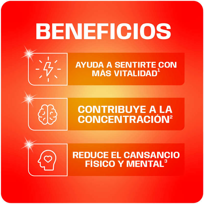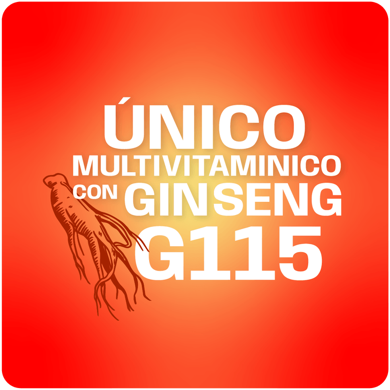 Óxido de magnesio pesado, Ascorbato de calcio, Extracto natural de Panax Ginseng (G115), Acetato de DL-alfa-tocoferol, Sulfato de zinc monohidrato, Sulfato ferroso deshidratado, Nicotinamida, Palmitato de vitamina A, Pantotenato de calcio, Sulfato de manganeso monohidrato, Clorhidrato de piridoxina, Nitrato de tiamina, Sulfato de cobre anhidro, Colecalciferol, Riboflavina, Ácido fólico, Selenito de sodio, Biotina, Cianocobalamina. Celulosa microcristalina (AGC), lactosa monohidrato (AGC), crospovidona (EST), dioxido de silicio (ANAH), estearato de calcio (EMU). Recubrimiento : Opadry II86FF265001 (COL), (contiene alcohol polivinilico pacr. hidrolizado, Macrogol/PEG 3350, talco, oxido ferrosoférrico NF/Oxido de hierro negro, oxido de hierro rojo, vainillina), aromatizante chocolate (ARO), agua purificada