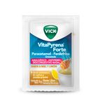 Vick Vitapyrena Forte Analgésico Antifebril Descongestivo 5 sobres. Alivia 5 síntomas de la gripe: Dolor de cabeza, dolor de garganta, dolores musculares, congestión nasal y fiebre. Sabor a miel y limón.